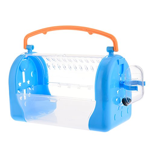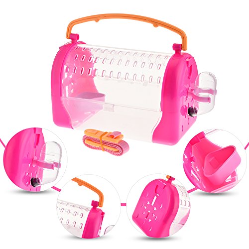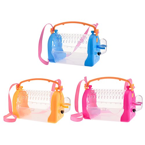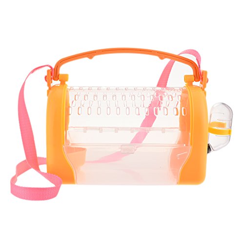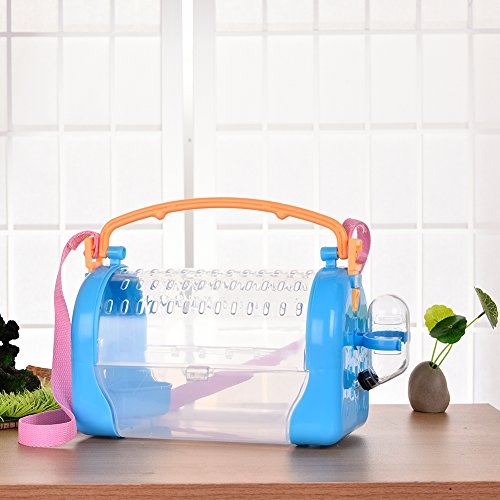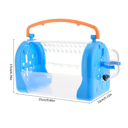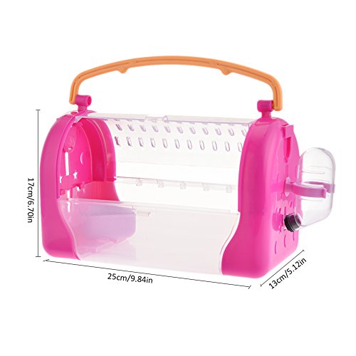 -. Feature : Size: about 25 * 13 * 17cm / 9.84 * 5.12 * 6.70 inch / PP material is reinforced and thickened, so it is durable / It is lovely and beautiful in appearance. And the bottom part is heightened and anti-skid, so it is more stable to use / Breathable holes at the top and the handle allow you to carry small pets out / It is fully functional, including shoulder straps, small food containers, water bottles, and main single cage. Therefore, it is convenient for you to carry small pets out. Applicable Scope: hamsters, golden hamsters, young guinea pigs and so on