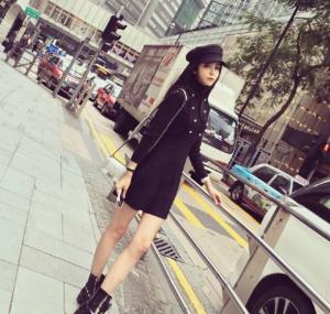 ハイネックからフロントの金ボタンデザインは格式高いエレガントさをかもしだしていますよね♪