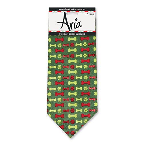 -. Binding : Misc. -. Brand : Aria -. EAN : 0721343032250 -. Feature : These fun dog bandanas, the Aria Holiday Bones Bandanas, go bold and bright with an all-over bone print / These fun holiday-print bandanas for pets can be worn as an accessory / Features a whimsical print of pawprints and bones with polka dots, sure to become a classic holiday favorite -. Label : PetEdge Dealer Services -. Manufacturer : PetEdge Dealer Services -. Model : DT1066 13 -. MPN : DT1066 13 -. NumberOfItems : 1 -. PackageQuantity : 1 -. PartNumber : DT1066 13 -. ProductGroup : Pet Products -. ProductTypeName : PET_SUPPLIES -. Publisher : PetEdge Dealer Services -. Size : 19"X19" -. Studio : PetEdge Dealer Services -. Title : Aria Holiday Bones Dog Bandana, 19"X19" -. UPC : 721343032250