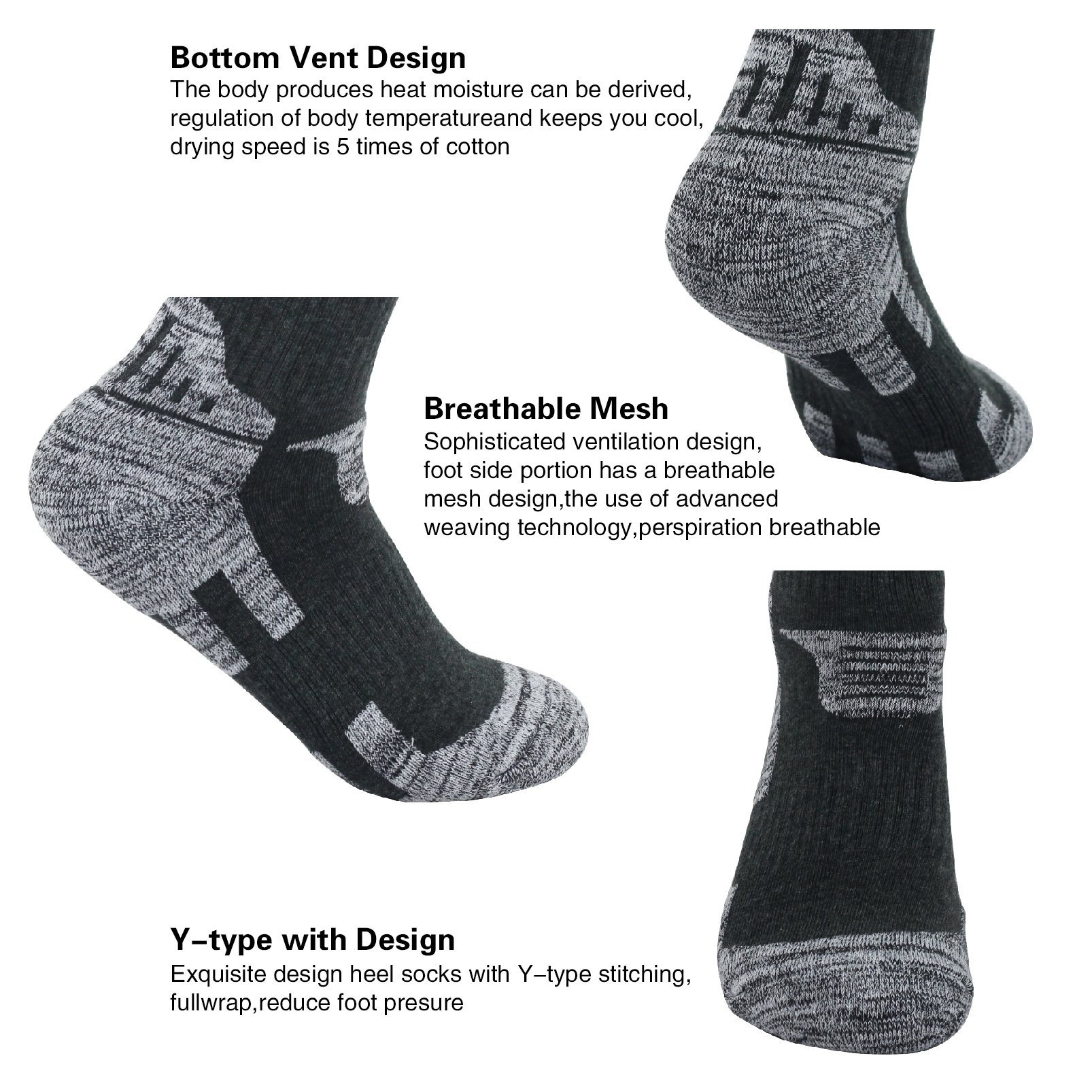 - Fine gauze knitting makes hiking socks super comfortable breathability and quick drying.
