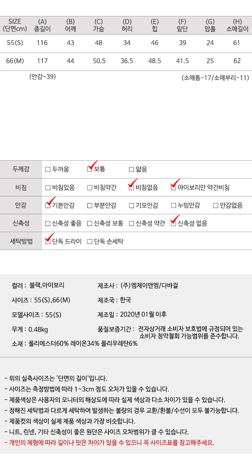 | 특이 사항 | 배송, 변경, 반품 환불에 대한 문의는 위 연락처로 문의 주세요. | ||