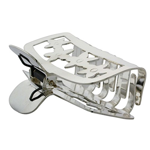 -. Feature : Very well made from Alpaca (metal alloy of copper and nickel, silver plated) / Weight: 25g / Measures: 61 x 37 x 20mm (Approximately 2.4" x 1.5" x 0.79") / This hair claw clip has a steel spring (only compoment not alpaca). It is the most suitable material for springs for its properties of strength, memory (for repeated operation), reliable functionality, durability, and satisfactory service for a long time.