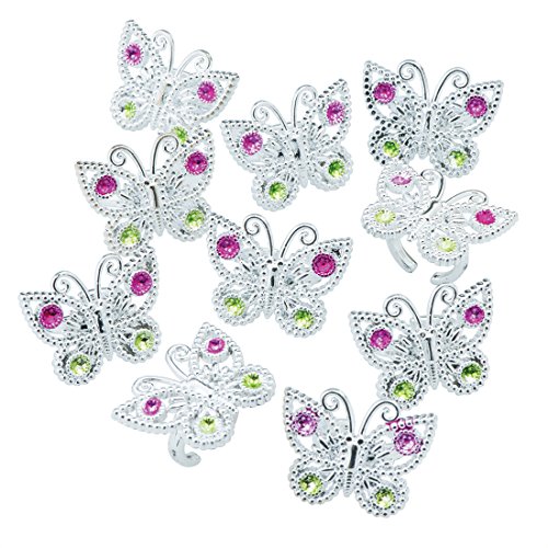 Studio : SmileMakers Inc Publisher : SmileMakers Inc Binding : Toy Product Description Silver butterfly inspired rings look beautiful! Decorated with green and purple faux jewels, girls of all ages will love receiving one as a reward or prize. Made of plastic. 1 inch butterfly; 3/4 inch ring 0