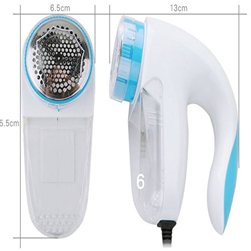 Color: White and Blue,Voltage: 220V. Package includes: 1x lint shaver and 1x US adapter. Not for use on garments with long fibres such as mohair, or on silk, cashmere and other more delicate woolens and fabrics. By removing the lint and pills, you can keep clothing and furniture clean. Quick and easy to use. Simply run the shave head over the fabric.Fuzz, lint and pills are removed and collect inside the clear chamber which can be emptied when required. Fuzz,lint and pills are suctioned into the holes, cut off by the rotating blade and then deposited into the lint chamber.