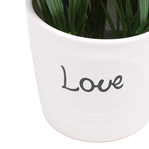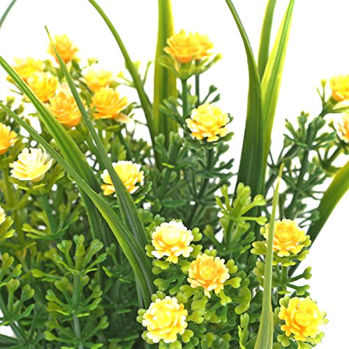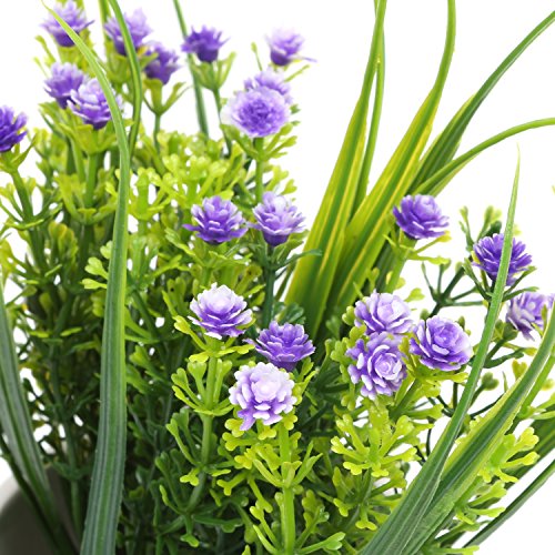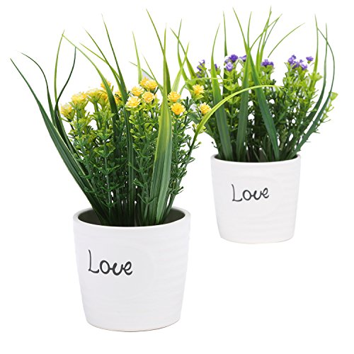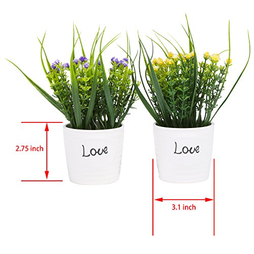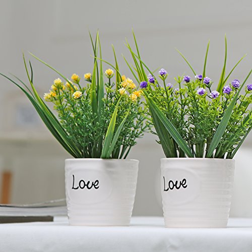 Set of 2 Purple & Yellow Artificial Flowers, Faux Plants in White Ceramic Pots