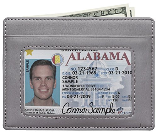 High quality PU leather. Measures: About 4.5" x 3.4" x 0.2". This thin RFID wallet gives you convenience and no burden.