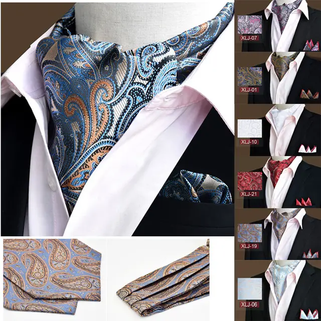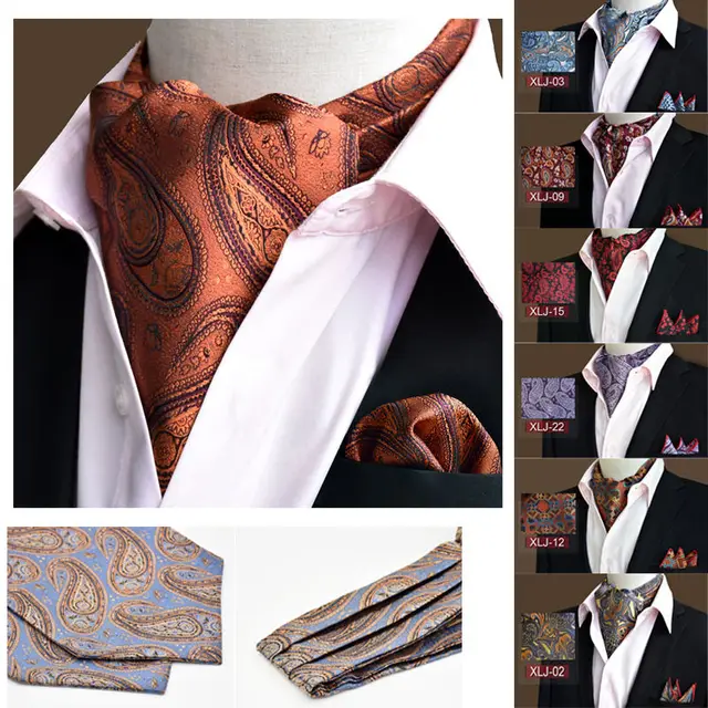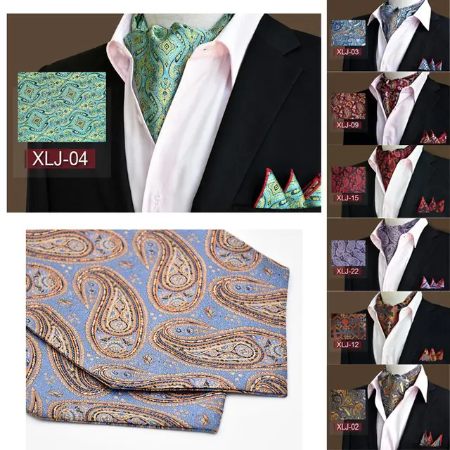 | [해외]LJT01 20 색 남성 럭셔리 꽃 페이즐리 실크 에스코트 넥타이 넥타이 일치하는 손수건 포켓 스퀘어 정장 세트 파티 |