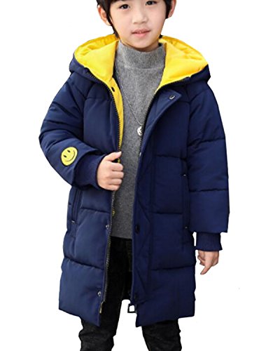-. Title : SANKU ボーイズ ダウンコート ダウンジャケット フード付き Smile柄 ロング丈 中綿 コート ジャケット 暖かい 人気 かっこいい 冬 おしゃれ パーカー アウター 男の子 綿服 子供服 キッズ 防寒着 防風 トレンチコート