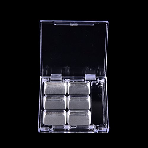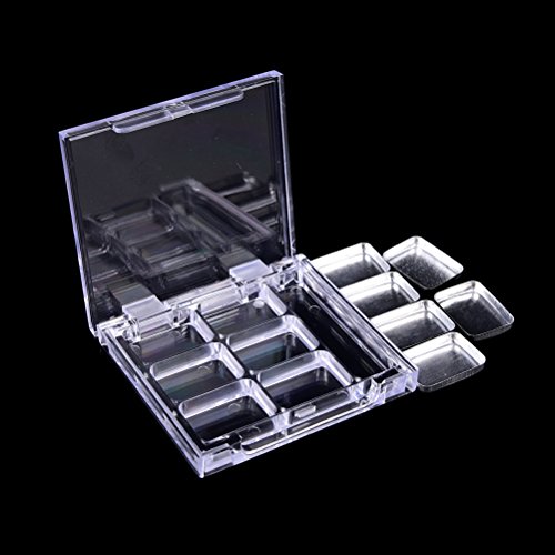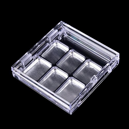 -. Feature : ★You can blend your own colors and DIY your favorite eye shadow / ★There are 6 aluminum pans in each container, and a lattice for mini brush / ★Material - Plastic, aluminum / ★Size - Total size: 63*61*12mm; each rectangular (L*W): 21*16mm; 2ml per lattice / ★Package Include - 2 * eye shadow containers(not include brush)
