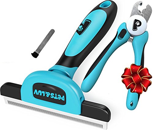Dog Brush for Shedding / Deshedding and Light Trimming Brush - Reduces Pet’s Shedding Hair by 90%- FREE Nail Clipper and Nail File, Best for Short and Long Hair