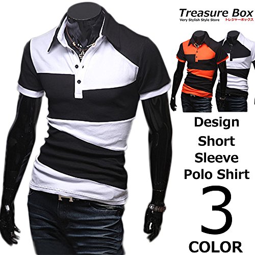 원본상품명: (トレジャ?ボックス)Treasure Box ゴルフウェア メンズ ポロシャツ 半袖 デザイン (M, ブラック)