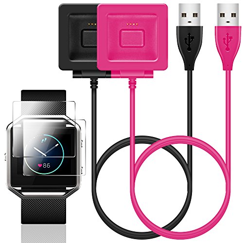 PACKAGE CONTENT: 2 Ultra Clear fitbit blaze screen protectors and 2 pack replacement Fitbit Blaze chargers ,necessary accessories kit for your fitbit blaze.