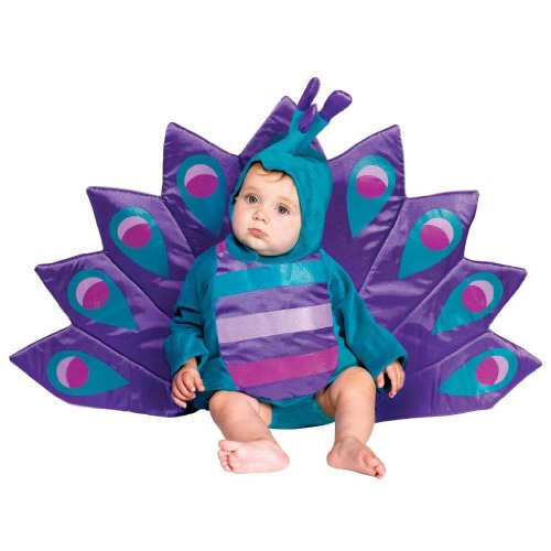 -. Feature : Beautiful peacock costume for baby features soft textured teal velour costume with attached peacock satin 'feathers' and matching peacock hood with velcro closure. Velcro closure in back. Gentle elastic at legs. Body and peacock feather back is lightly padded for added fullness OUTSTANDING and TOTALLY UNIQUE!! / One size fits infants wearing size 6-18 month