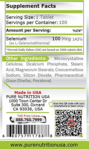 -. Binding : Health and Beauty -. Brand : Pure Nutrition USA -. Color : white -. EAN : 0680757117888 -. Feature : ★ SELENIUM IS A POWERFUL ANTIOXIDANT - Stop those free radicals / ★ PROMOTES HEALTHY IMMUNE SYSTEM - Helping body fight off any infection / ★ SUPPORTS ENERGY PRODUCTION - Helping body to optimize energy levels / ★ SELENIUM IS ESSENTIAL TRACE MINERAL - Our bodies need it but can't produce it on their own / ★ WE WON'T BLAST YOU WITH TONS OF MARKETING PERSUASIONS; GET IT, TRY IT, SEE IF YOU ARE HAPPY, OR GET YOUR MONEY BACK! PERIOD. -. IsAdultProduct : 0 -. Label : Pure Nutrition USA -. Manufacturer : Pure Nutrition USA -. MPN : 7888 -. PackageQuantity : 1 -. PartNumber : 7888 -. ProductGroup : Health and Beauty -. ProductTypeName : HEALTH_PERSONAL_CARE -. Publisher : Pure Nutrition USA -. Size : 100 Tabs -. Studio : Pure Nutrition USA -. Title : Selenium Supplement 100 mcg Selenomethionine Essential Trace Mineral Thyroid Prostate Healthy Heart Immune System Energy Production Support Powerfull Antioxidant Yeast free 100 Tablets -. UPC : 680757117888