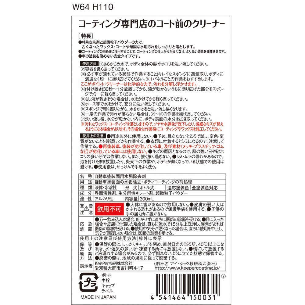 Cleaner of the previous coat of Estates coating shop Produced by KeePer I-04