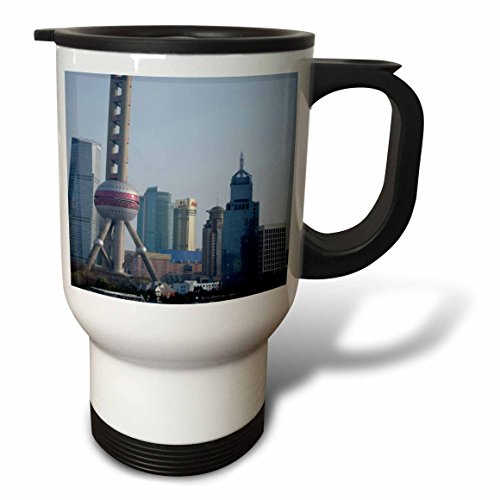3dRose tm_132391_1 China, Shanghai, The Bund, Huangpu River AS07 CMI0446 Cindy Miller Hopkins Travel Mug, 14 oz, Stainless Steel, White