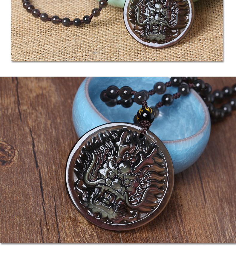 天然冰种彩虹眼黑曜石龙牌黑龙迎禄神龙赐福吊坠项链