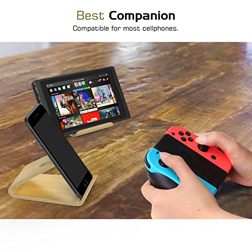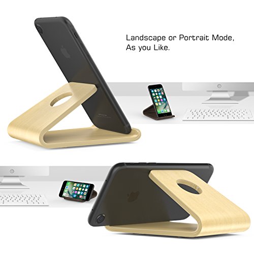 MoKo Wooden Cell Phone Stand, Wood Smartphone Holder for Apple iPhone 7, 7 Plus, SE, 5s, 6s, 6s Plus, Nintendo Switch, Samsung S8/S8 Plus, Google Nexus 6, Nokia, HTC, LG and More, Birch Color