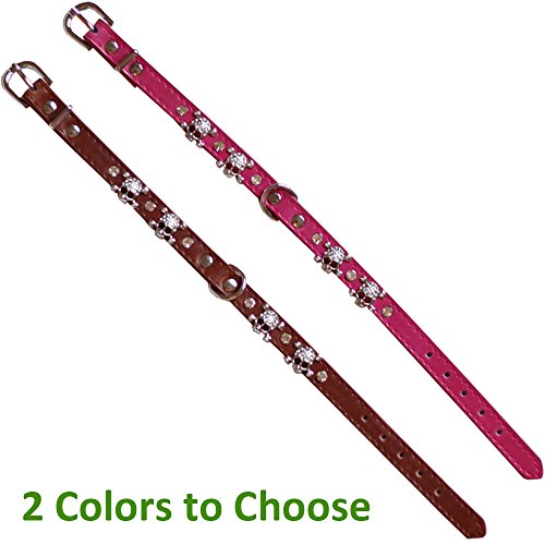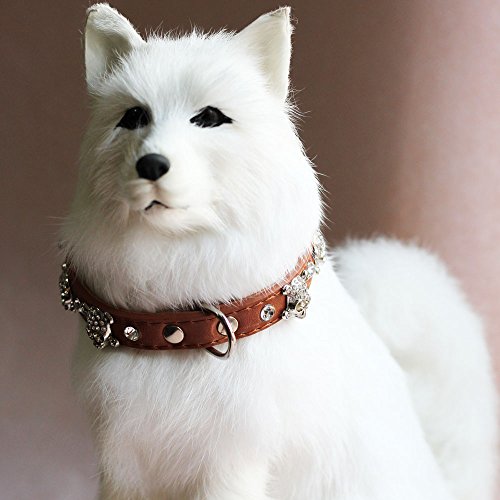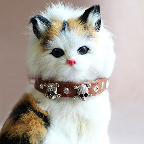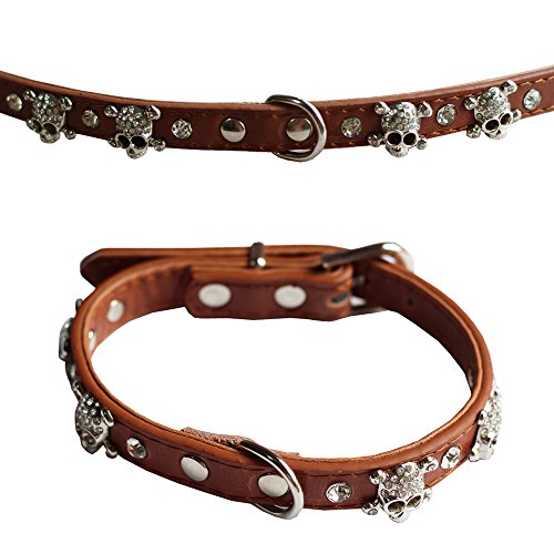 Bolbove Leather Pet Skull & Crossbones Collar with Crystal Rhinestones for Dogs & Cats