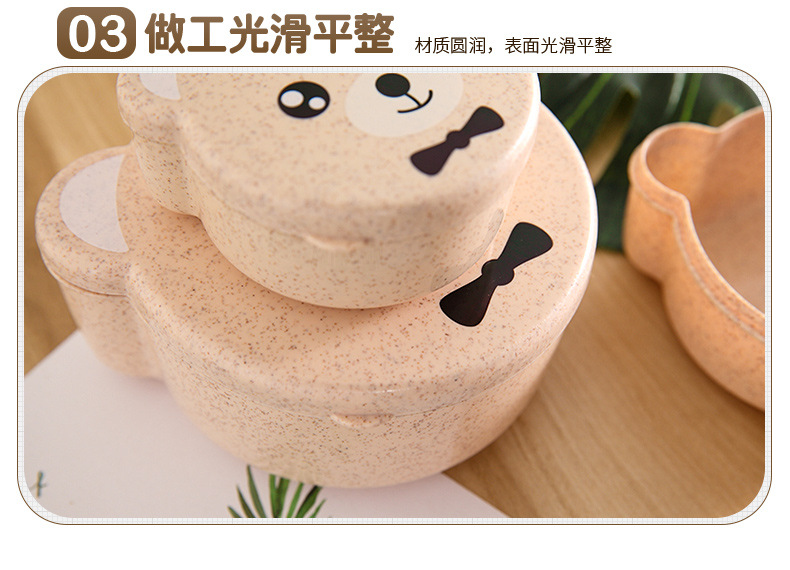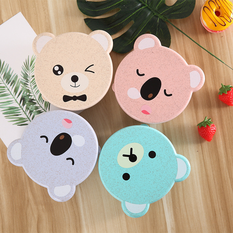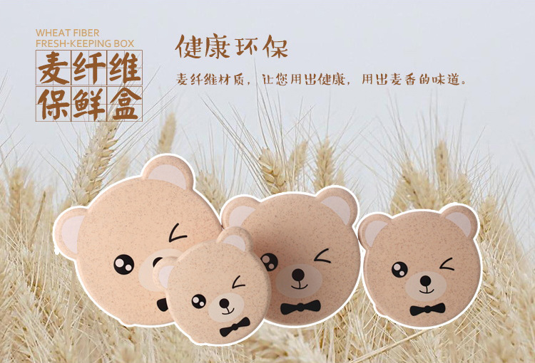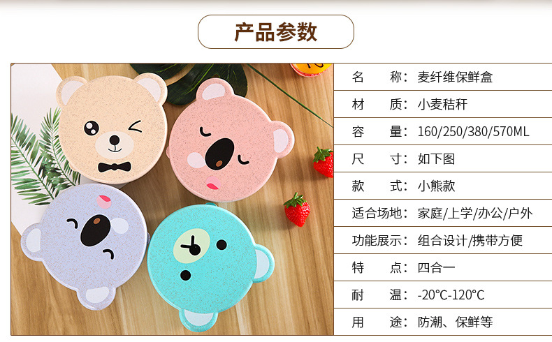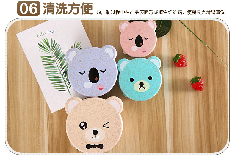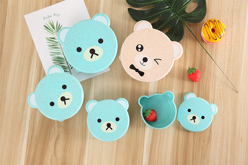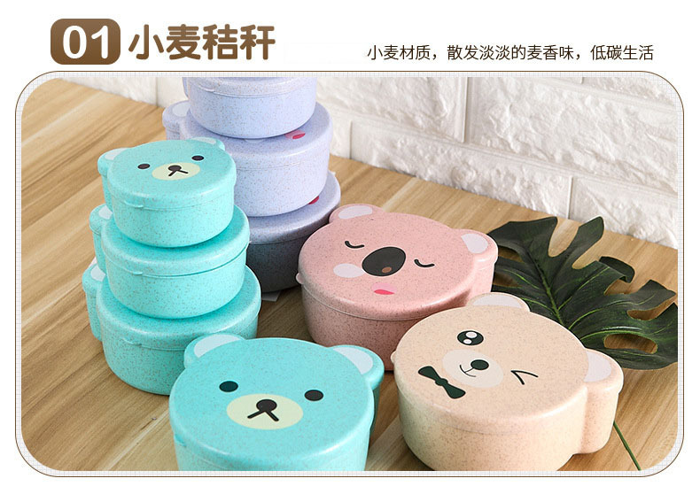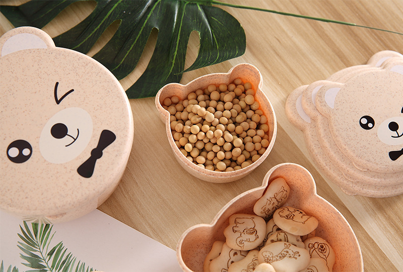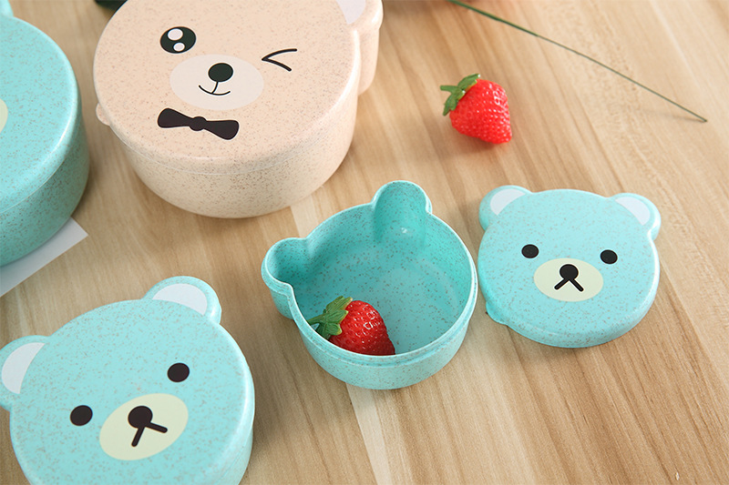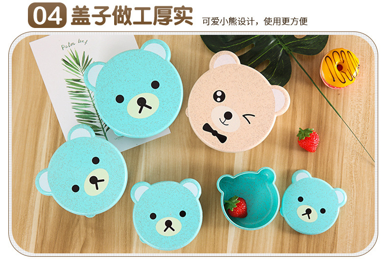 儿童小麦秸秆餐具 可爱小熊四合一可微波便当盒 保鲜密封盒饭盒