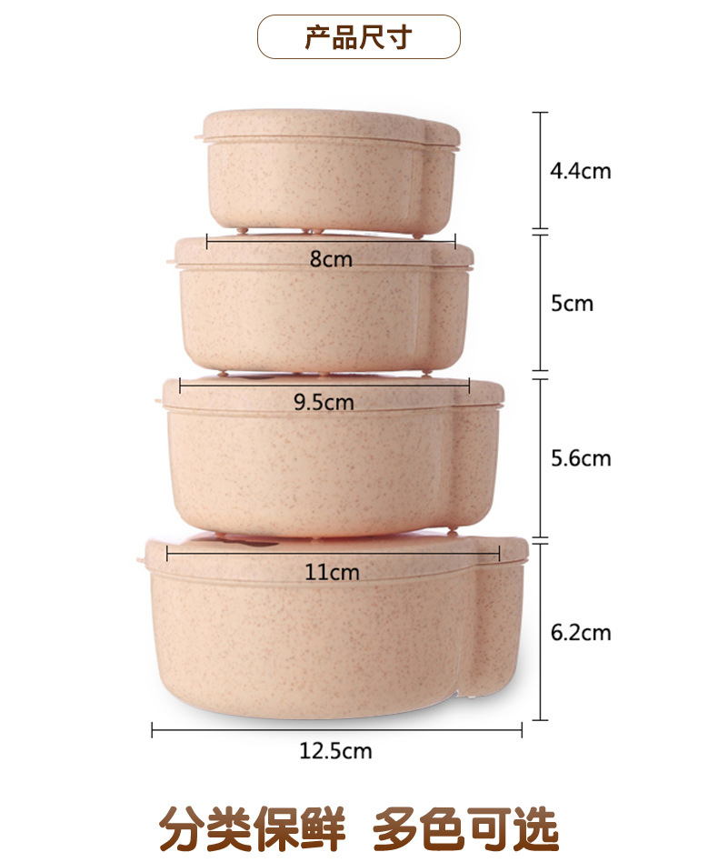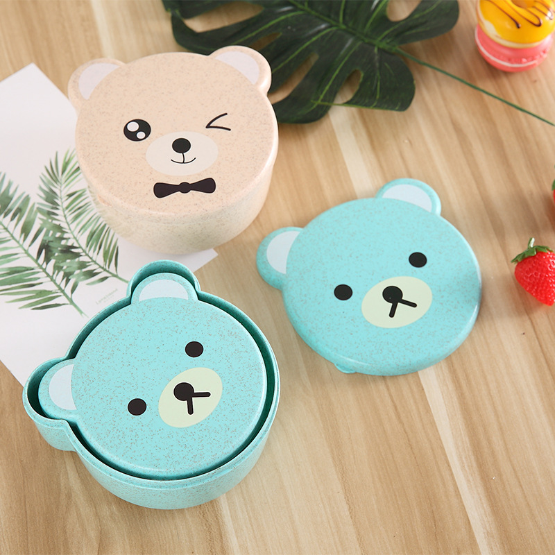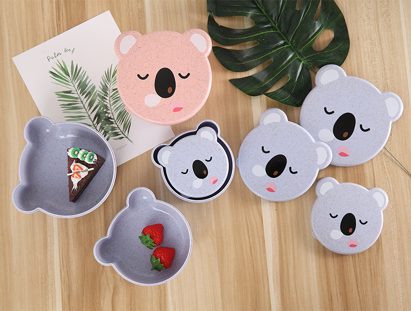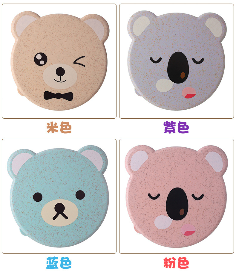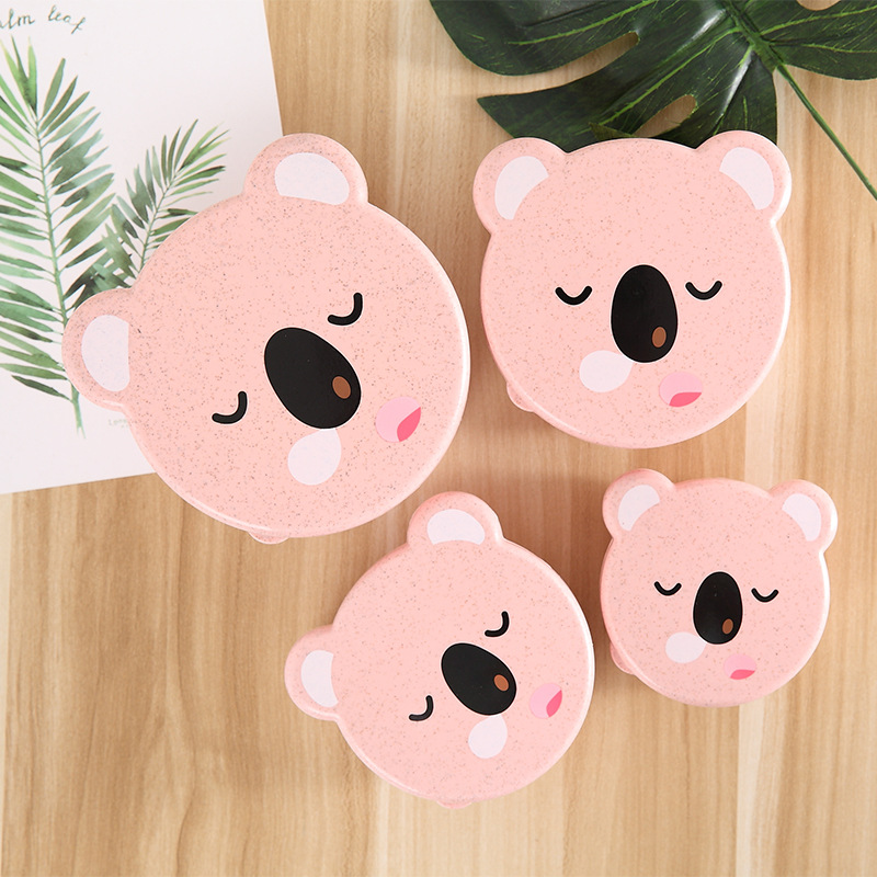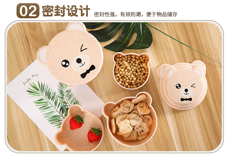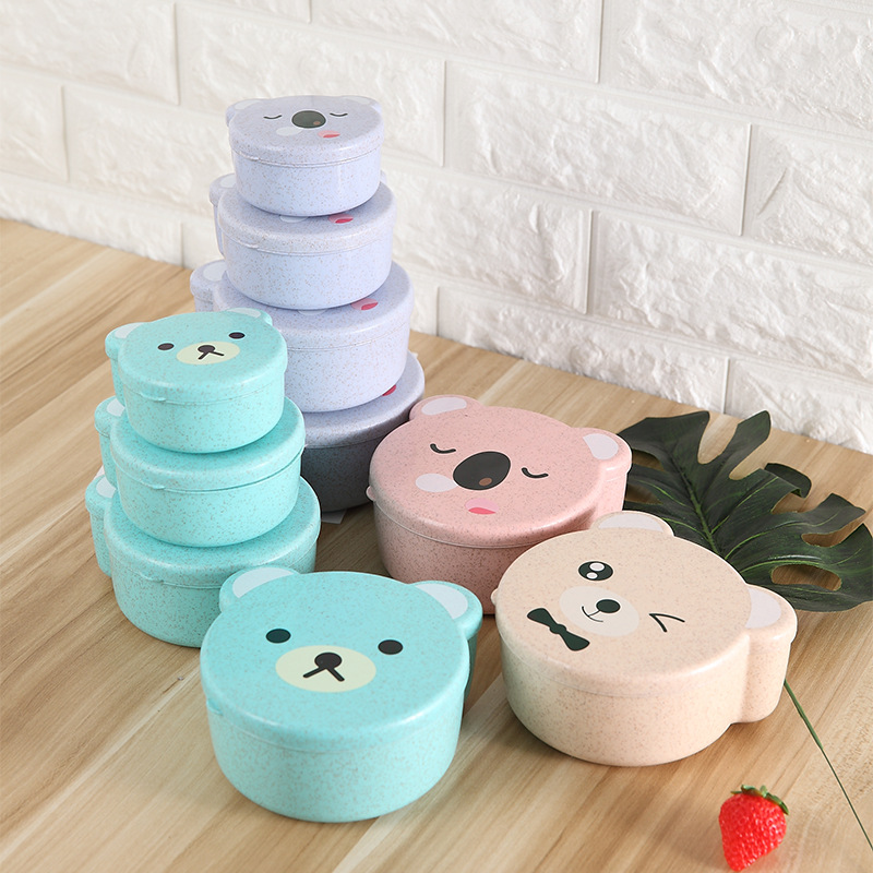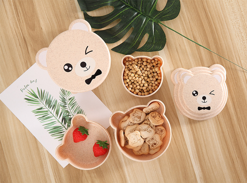 儿童小麦秸秆餐具 可爱小熊四合一可微波便当盒 保鲜密封盒饭盒