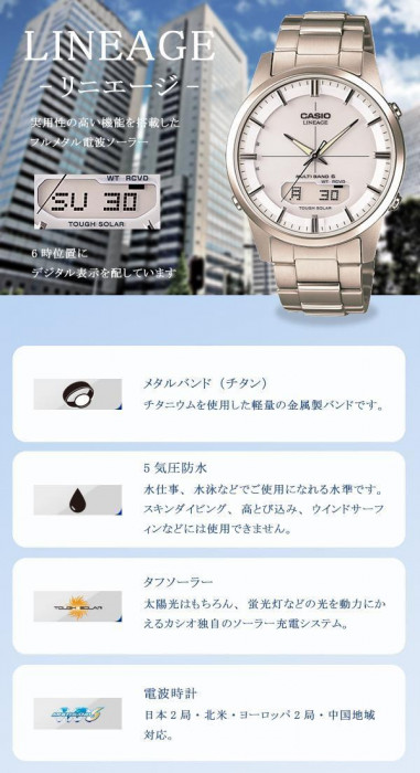 | フルメタルケースのソーラー電波時計「LINEAGE(リニエージ)」。 |