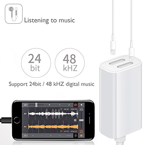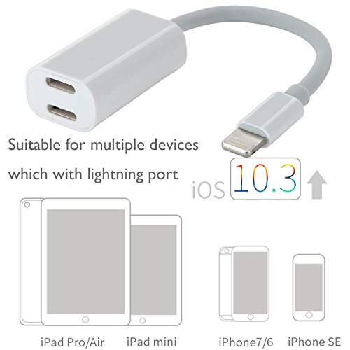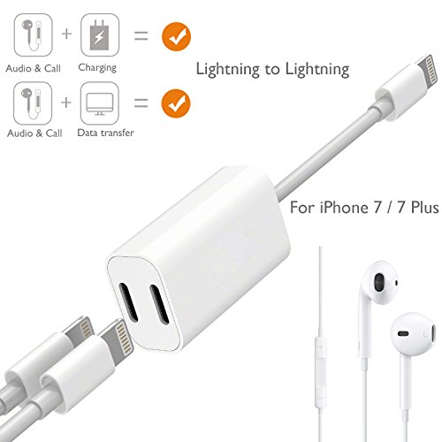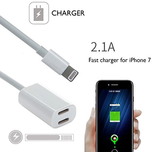 iPhone 7 Dual Function Lightning Adapter, DISDIM Lightning to Lightning Audio and Fast Charger Cable with 8 Pin 2 Ports Adapter [Music Control + Phone Communication] for iPhone 7 / 7 Plus iOS 10.3