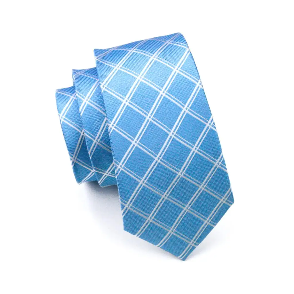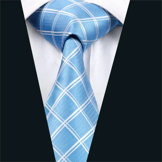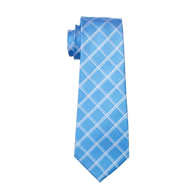 | [해외]DH-378 남성 실크 넥타이 블루 격자 무늬 넥타이 100% 실크 자카드 남성 넥타이 비즈니스 웨딩 파티 무료 배송 |