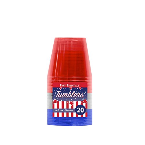 Party Essentials N92027 20-Count Patriotic Assortment Hard Plastic 9 oz Tumblers Cups, Red/Clear/Blue