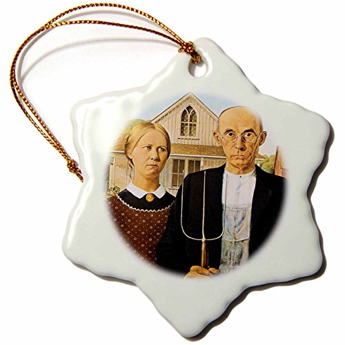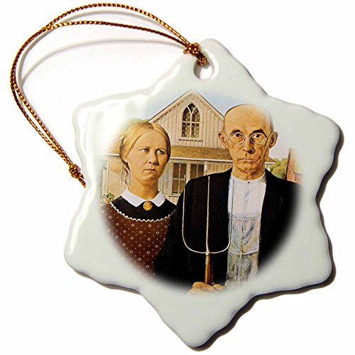 3dRose orn_130186_1 American Gothic by Grant Wood Snowflake Ornament, Porcelain, 3-Inch
