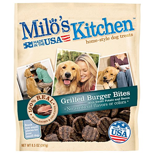 Milo's Kitchen Grilled Burger Bites with Sweet Potato and Bacon Dog Treats, 8.5 oz.