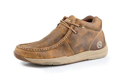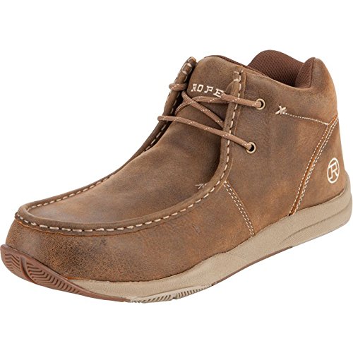Studio : Roper Footwear Publisher : Roper Footwear Binding : Shoes Product Description Kick off your work boots and slip onto a pair of comfortable chukka boots by Roper. These men's chukka boots feature a stylish, distressed leather upper and two-eyelet lace-up closure. Its interior is lined and padded in order to provide you with support and comfort for all-day wear. A walking heel relieves fatigue so you can stroll away the weekend. 0