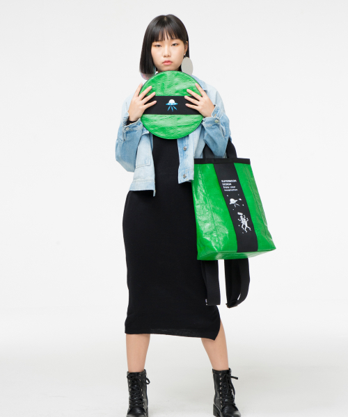 슈퍼문(SUPERMOON) UFO-G 슈퍼문우주선그린동그라미천막천방수블랙밴드클러치디자이너가방