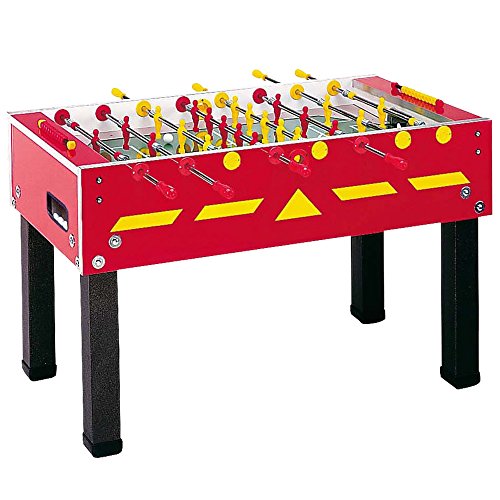 Studio : Imperial Publisher : Imperial Binding : Misc. Product Description Impress your family and friends with your mad soccer skills with the Garlando G-500 Red Weatherproof Foosball Table by Imperial. This game room must-have is constructed from marine high-quality multi-layer plywood coated with plastic laminate, both water-resistant and brought together using a special water-proof glue for perfect sealing. The cabinet is designed with red with yellow accent colors. For optimum durability, the entire table is supported by heavy-duty legs made from 9cm. 4 x 4 inches square steel coated with washable powder varnish. The playing field is made from plastic laminate attached using special water-proof glues. The white lines reproducing the football ground are silkscreen printed using a special ink that will not fade under the sun nor are damaged by dampness. This sleek game table is available either with fully rotating (360 degrees) or non-rotating (180 degrees) goalkeeper. It features solid red and yellow players representing a stylized human figure and is directly molded onto the bars. Get yours today from Dazadi and enjoy FREE SHIPPING! 0