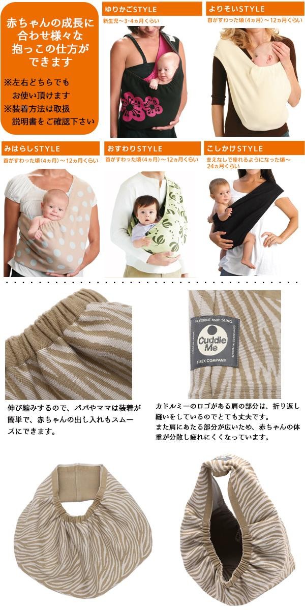 赤ちゃんが一番安心するのは、お母さんのお腹の中にいたときと同じ状態で抱っこされるとき。ニットの特性の「伸びる」「復元する」という性質は、赤ちゃんに適度なフィット感をもたらし、着脱もしやすいのが特徴です。家事やデスクワークのときも、ストレスを感じないで、赤ちゃんといつも一緒に過ごせます。 |