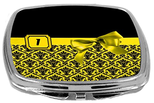 Rikki Knight Letter-I Monogram Damask Bow Design Compact Mirror, Yellow, 2 Ounce