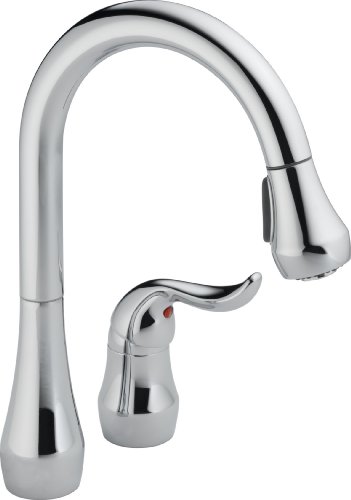 - Pull-down wand operates in an aerated or spray mode via a toggle diverter