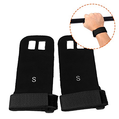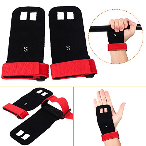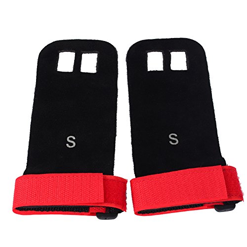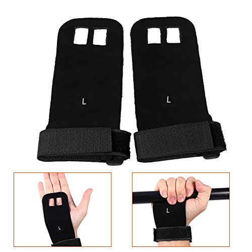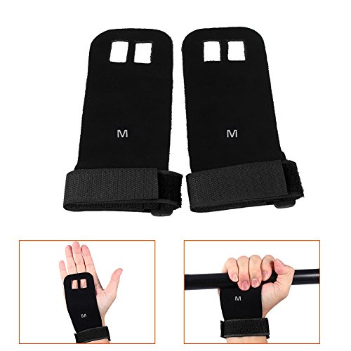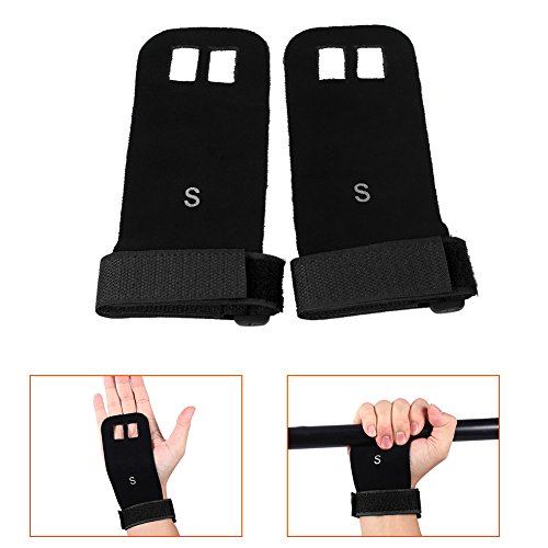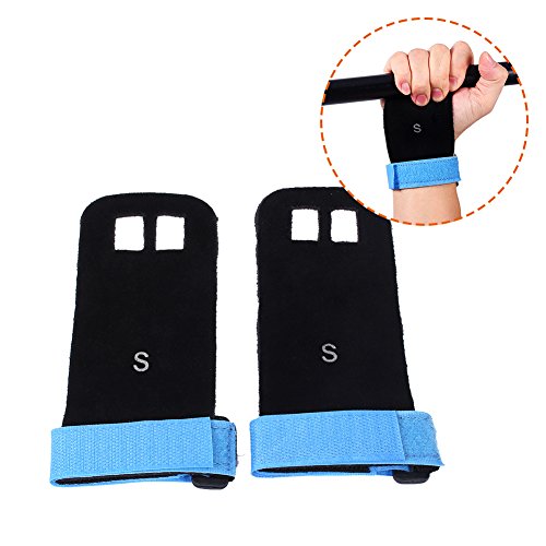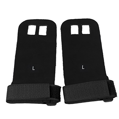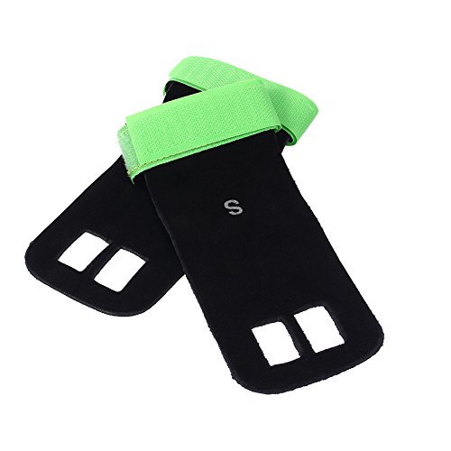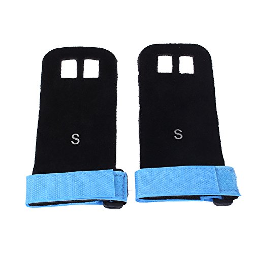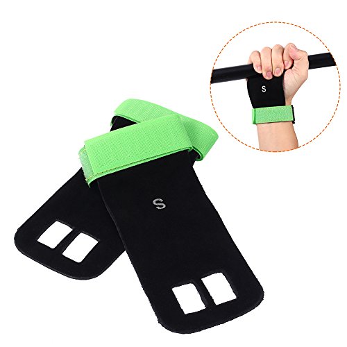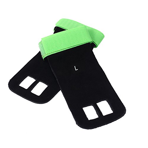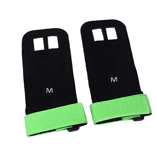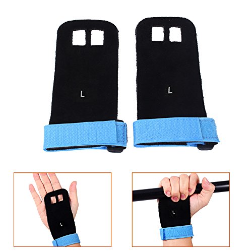 Our gynastic gloves are made of high quality artificial leather, not only durable but also soft and formfitting. No more slips and reduced friction while gripping exercise equipment or doing workouts. Give comfort and protection to your hands and protect you against injury callus. Your middle two fingers will slide through the finger holes of the grip and the strap can be adjusted for your wrist size. Very versatile gym padding gloves designed to improve your performance.Great accessories for you when you doing exercise. Have a nice day. Specifications: Material: Artificial Leather Color: Green, Blue, Red, Black (optional) Weight: approx. 35g Package Included: 1 x 2pcs (1 pair) gloves 0