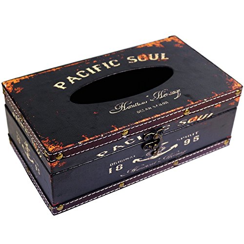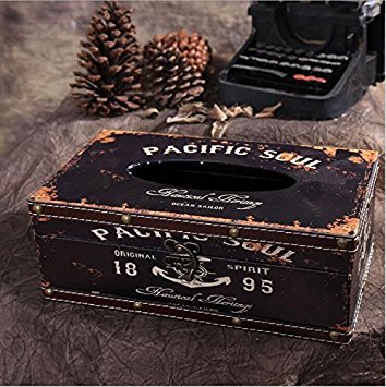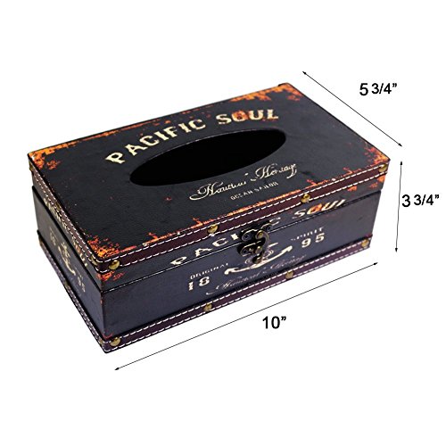 Retro Vintage Rustic Wood Tissue Holder Box Cover Facial Tissue Paper Dispenser Anchor Design Tissue Holder Home Decor(Black Pacific Soul)