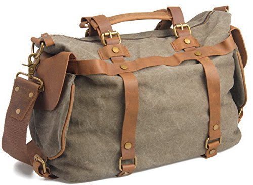 -. Feature : Dimension: 16 * 11 * 6"; weight 2 lb 4 oz / Cowhide leather top lift handle with zipper access / Antique old style with cowhide leather strap surround the bag / Large side attaching style pockets with cowhide flap over / Vintage brass fitting hardware;16oz durable thick canvas with reinforce material added