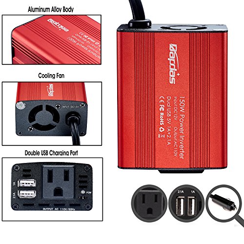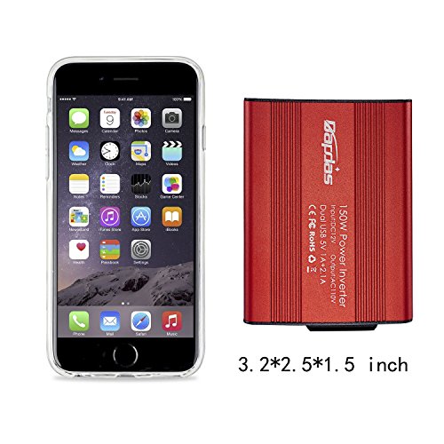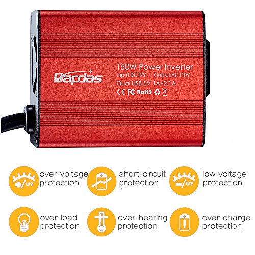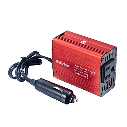 Bapdas 150W Car Power Inverter DC 12V to 110V AC Car Converter with 3.1A Dual USB Car Adapter-Red