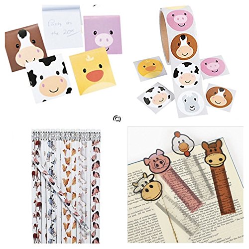 -. Feature : FARM ANIMAL Party Favors including: / 12 Assorted Farm Animal Notepads 3.5" x 4" with 30 blank pages / 12 Plastic Farm Animal bookmarks (6") - 12 Wooden Farm Animal Pencils w/eraser top (assorted) / and 24 Adorable FARM Animal Face STICKERS (1.5") / Lots of fun for your FARM ANIMAL themed Party