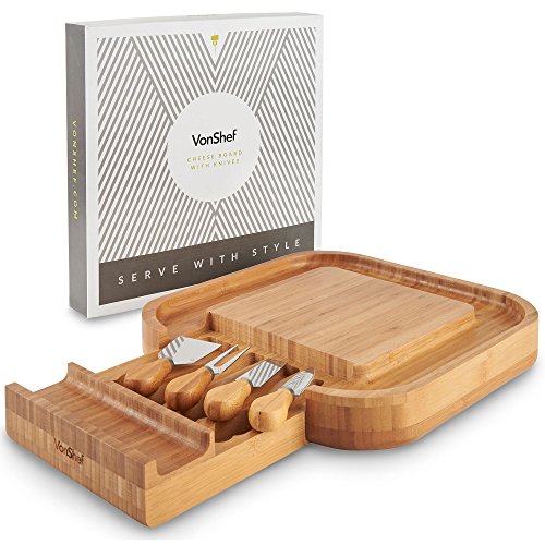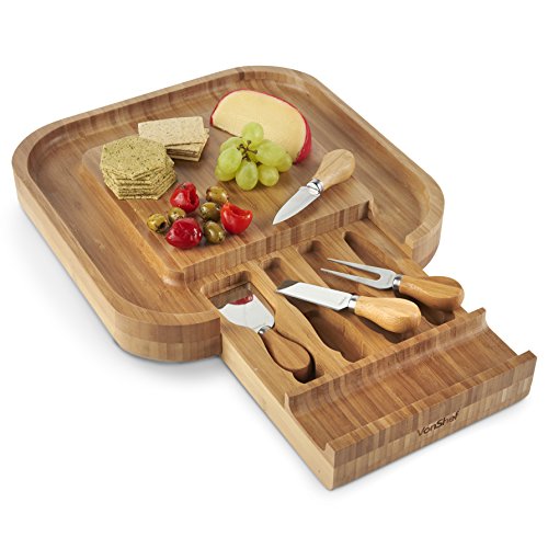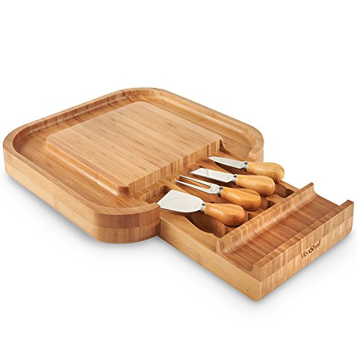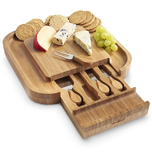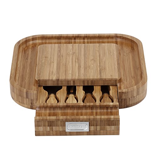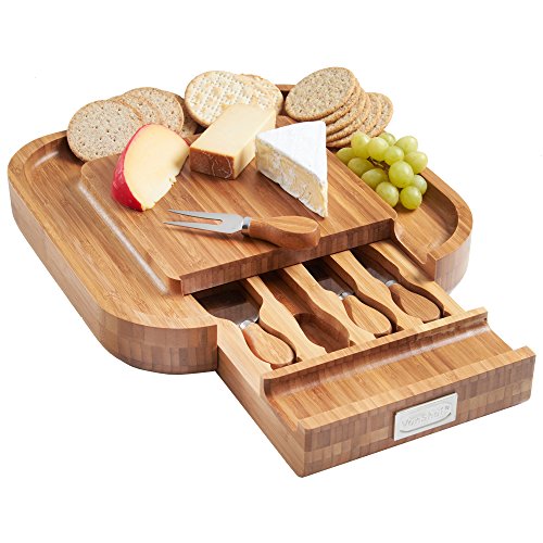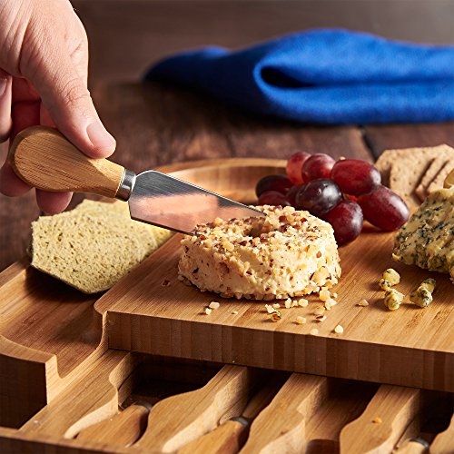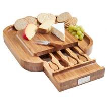 Designed with a concealed slide out tray, which stores the specialist cheese tools neatly until you need to use them. Set comprises Stilton knife, cheddar knife, hard cheese knife and cheese fork - all with strong stainless steel blades and smooth bamboo handles.