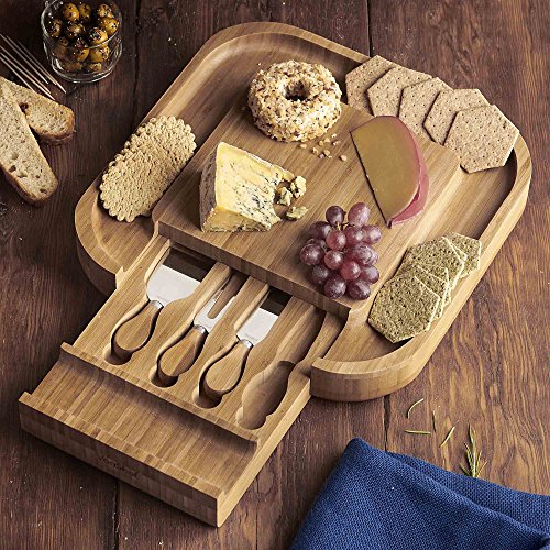 Made from sustainable and eco-friendly 100% bamboo wood, the cheese board is classically stylish and built to stand the test of time. Thanks to a large cracker serving border, you won't need to serve up cheese and crackers separately, and there's plenty of room for all your favorite varieties.