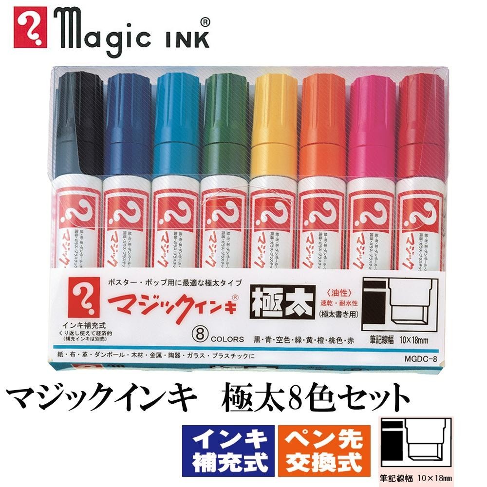 | 最大線幅18mm、最もペン先の幅が広いマジックインキです。インキ補充式、ペン先交換式になっていますので別売りの補充インキ・替えペン先により繰り返し使えます。 |