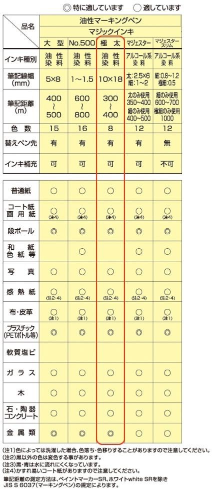 最大線幅18mm、最もペン先の幅が広いマジックインキです。インキ補充式、ペン先交換式になっていますので別売りの補充インキ・替えペン先により繰り返し使えます。 |