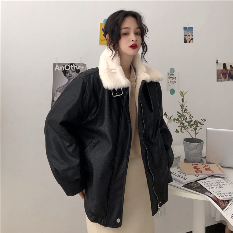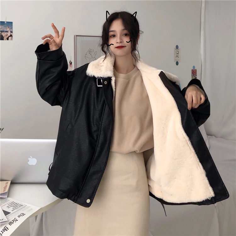 レザー調 エコファー裏地 ブルゾン ジャケット