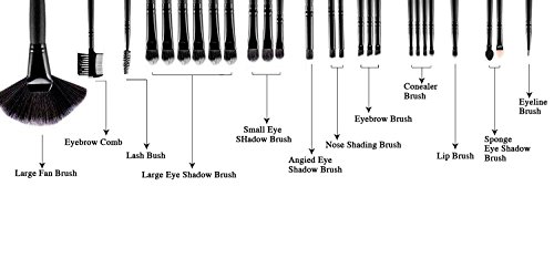 - This unique brush set is great for: Fan, Powder, Blush, Angled Contour, Eye Shadow, Medium Concealer, Blending, Large Shading, Nose Shading, Lip, Angled Eye Shadow, Small Blending, Short Eye Shadow, Small Fan, Small Eyebrow, Small Concealer, Eyeliner, Lash, Sponge Eye Shadow, Eyebrow, Eyelash Brush.