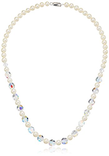 Genuine Swarovski Elements Beads and Potato Shape Cultured Freshwater Pearl Necklace with Sterling Silver Clasp Pearl Strand