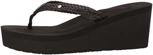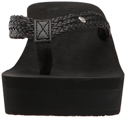 Studio : Roxy Publisher : Roxy Binding : Apparel Product Description Synthetic braided leather upper with mesh lining and memory foam backing, polyweb toe post, Roxy metal pin, perforated eva footbed for breathability with etched Roxy script, wedge style with eva outsole, hanging. 0